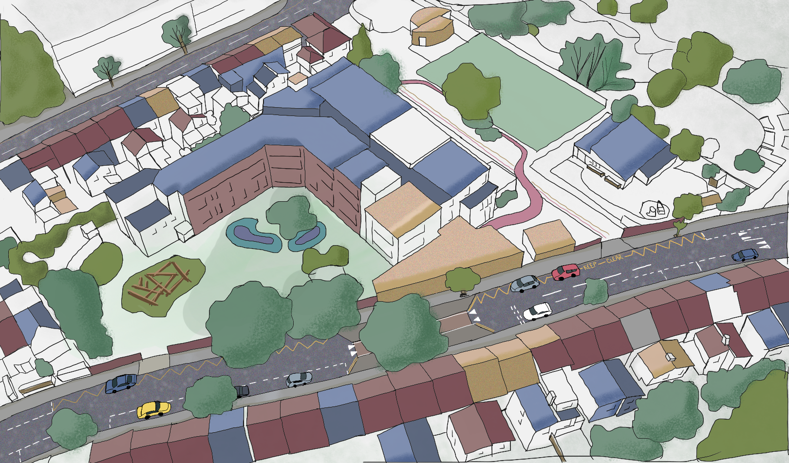 Concept drawing of Lowden Road before the addition of SuDS