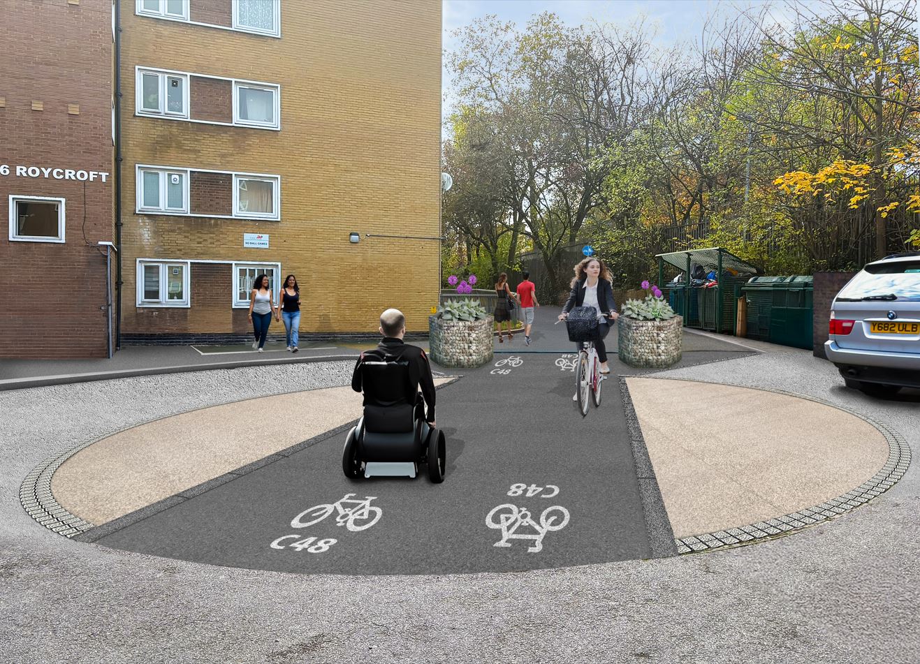 - Installing a smooth cycle path at the south end of Roycroft close (connecting to the pedestrian/cycle path) and replacing cobbles with high friction surface