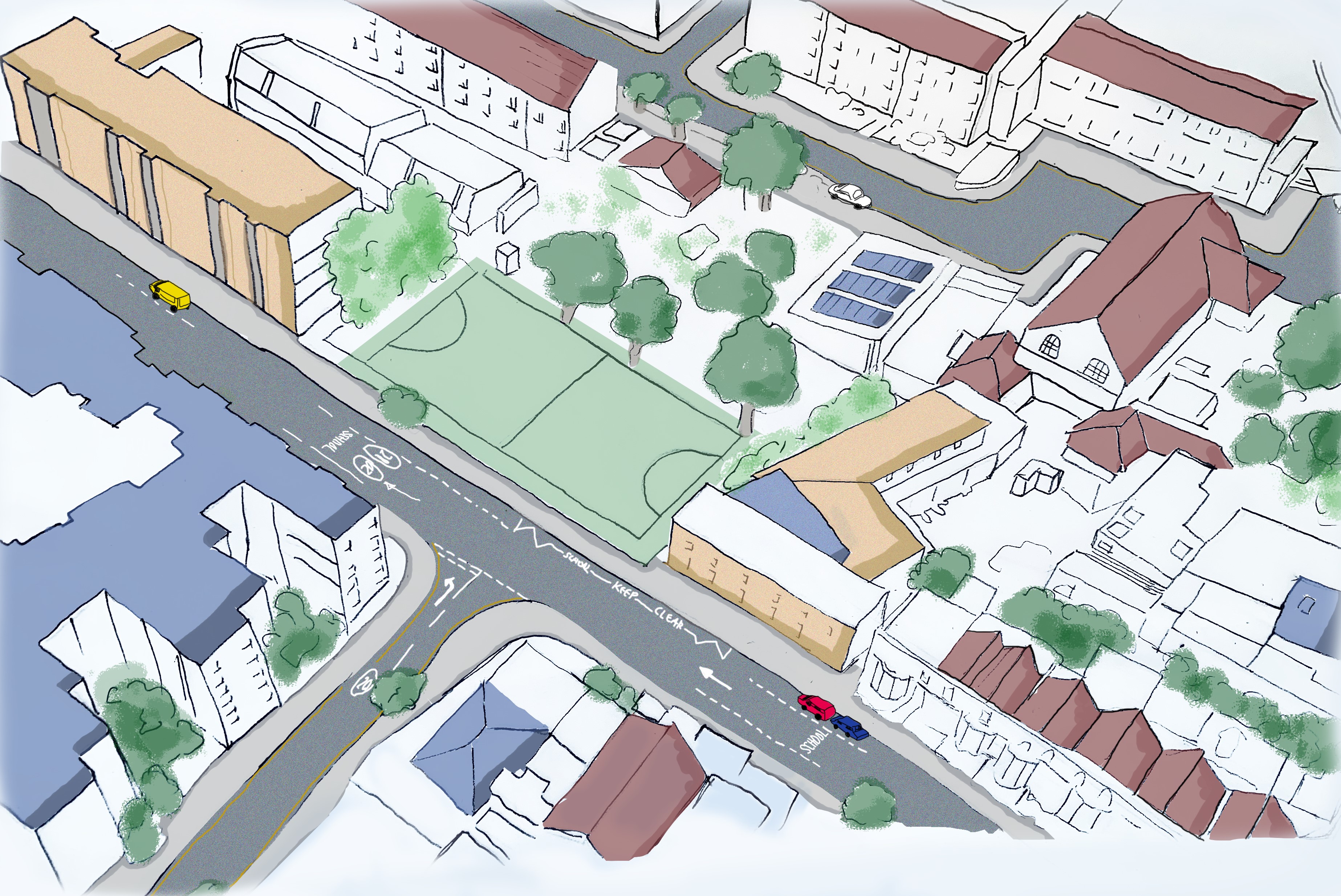 Concept drawing of Wincott Street before the addition of SuDS